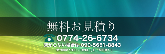 お気軽にお問い合わせください TEL 0774-26-6734